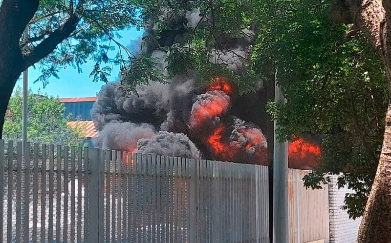 En medio del calor extemo que azota a la ciudad, un incendio tuvo lugar este domingo en un establecimiento de Battle y Ordónez al 3200, en la zona sudoeste de Rosario.