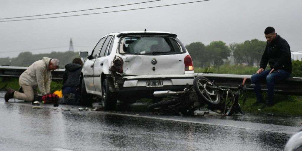 El accidente se produjo sobre el carril que va hacia el sur, después de que la moto choque de atrás contra el auto, que según las primeras informaciones se encontraba estacionado en la banquina con las balizas puestas tras sufrir un desperfecto técnico. Aún no se estableció la mecánica del hecho, pero todo parece indicar que se trató de una mala maniobra por las condiciones de tiempo.