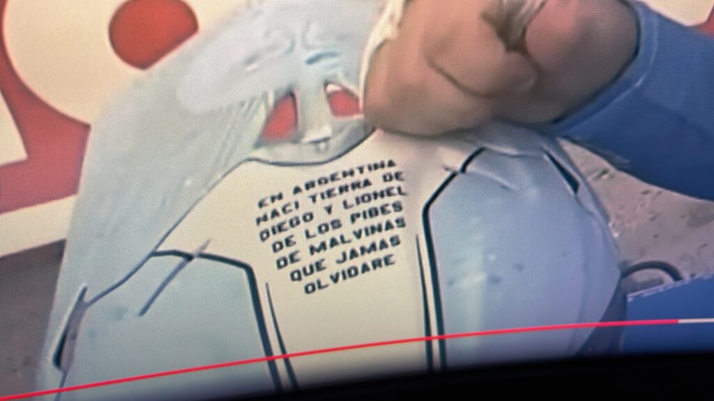 “En Argentina nací, tierra de Diego y Lionel, de los pibes de Malvinas que jamás olvidaré”. se detalla en la parte superior del casco de Andújar. Rápidamente, la imagen se viralizó en las redes sociales, festejaron la frase del piloto nacional.