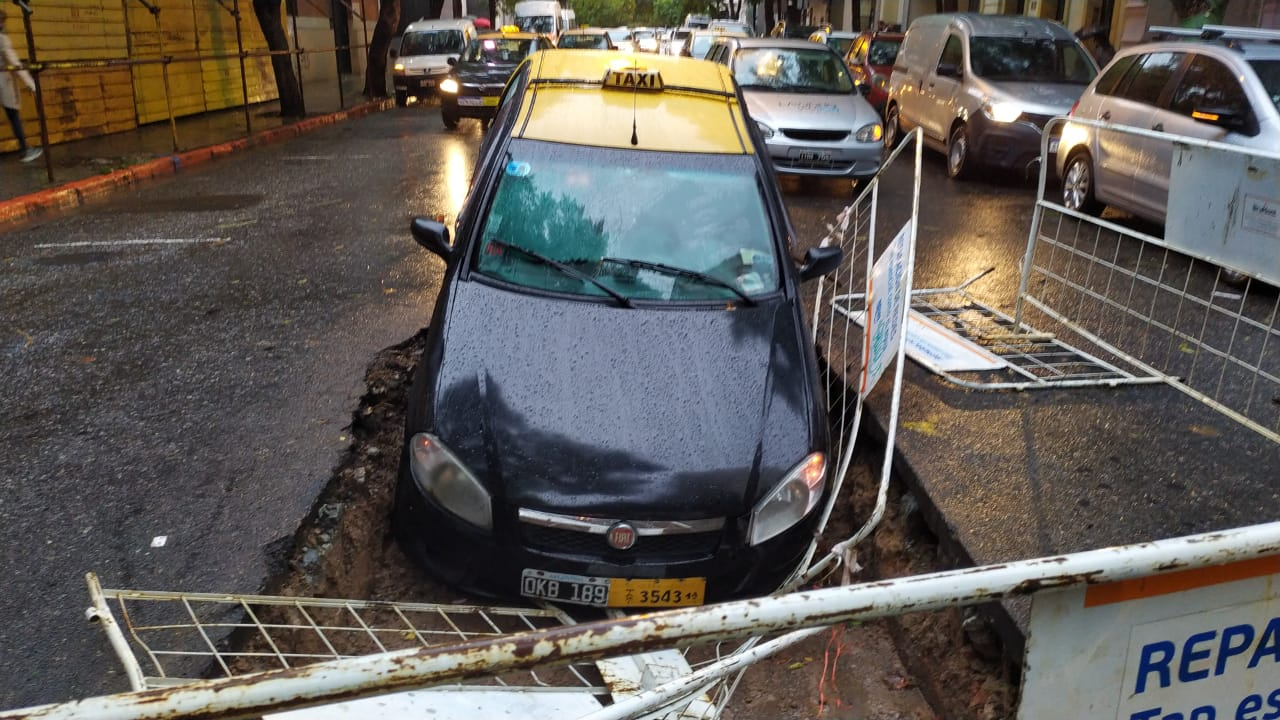 La mañana del jueves comenzó con muchos anegamientos y caos vehicular por las intensas lluvias que se están registrando en la ciudad. Un taxista, en el macrocentro de Rosario, no pudo esquivar un corralito de Aguas Santafesinas y quedó metido dentro del pozo cuando trasladaba a una pasajera en medio del diluvio.