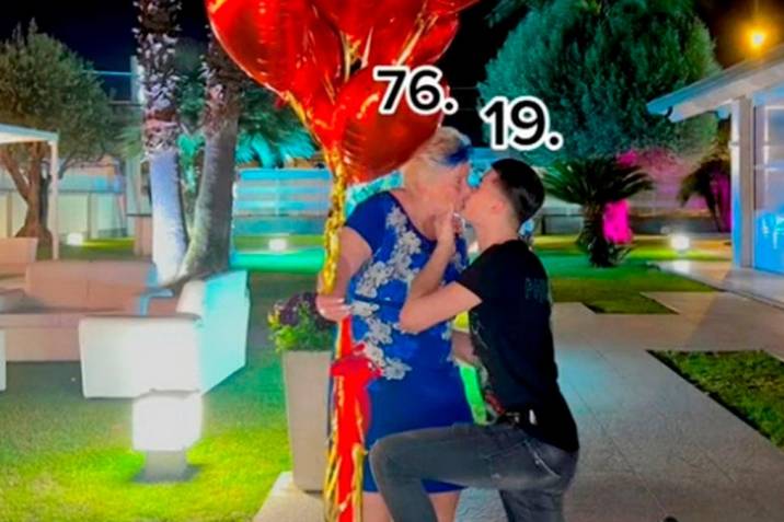 Un influencer italiano empezó a documentar en su cuenta de TikTok su noviazgo y se volvió viral, ya que tiene la particularidad que con su amada le lleva 57 años. Sin que las críticas lo frenen, redobló la apuesta y publicó el momento en el que le propone matrimonio. Se trata de Giuseppe D’Anna, un joven de 19 años. La futura esposa tiene 76 años, pero su nombre no fue revelado.