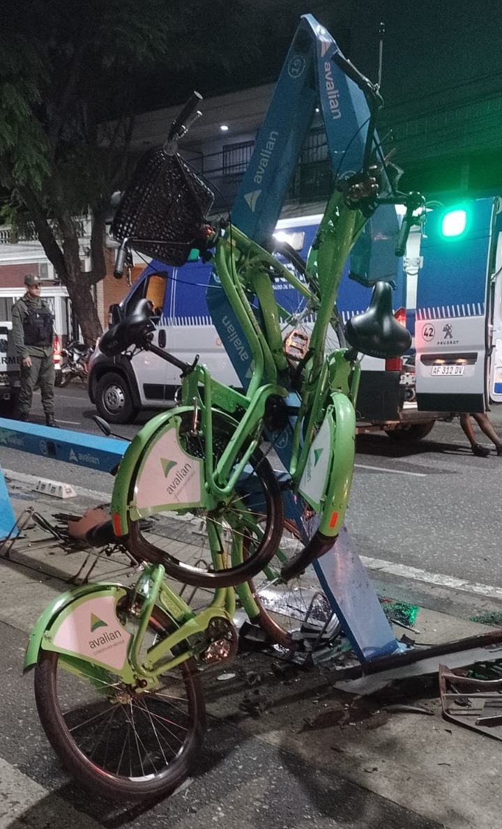 En la madrugada del domingo un vehículo marca Volkswagen modelo Surán se estrelló contra una parada del sistema de bicicletas públicas “Mi Bici Tu Bice” ubicado en calle Salta entre Crespo y Vera Mujica.