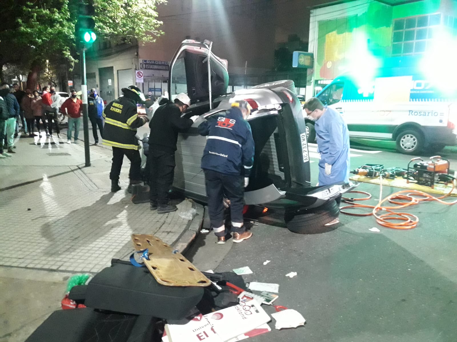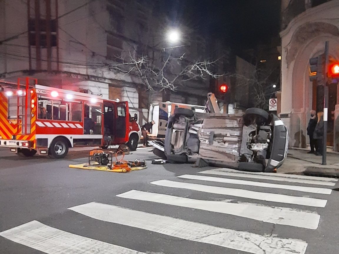 Este viernes por la noche, una ambulancia chocó a un auto en la esquina de España y Tucumán. El vehículo quedó volcado sobre la senda peatonal de ese cruce. Aún se desconocen las circunstancias del hecho.