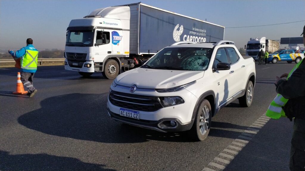Si bien en la zona existen los cruces peatonales, una persona quiso pasar de un lado a otro de la autovía de manera irregular con todos los riesgos que esto conlleva. Un conductor de una camioneta 4×4 no pudo evitar la colisión y terminó impactando al peatón que terminó tendido sobre la calzada.