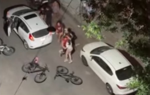La secuencia, según el relato de una vecina de la cuadra en la que se registró la pelea, comenzó porque el conductor del automóvil estaba circulando a alta velocidad y arrancaba derrapando.
