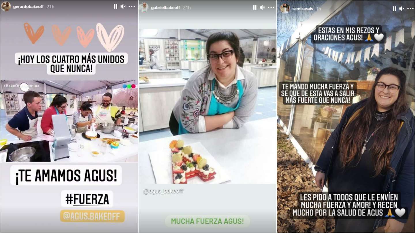 Ante la noticia, otros ex concursantes del ciclo de pastelería le enviaron fuerzas. “¡Hoy los cuatro más unidos que nunca, te amamos Agus!”, escribió Gerardo. “Muchas fuerzas Agus”, compartió Gabriel. Samanta Casais, por su parte, le pidió a los usuarios que “envíen amor” y “recen” por la salud de la ex participante.