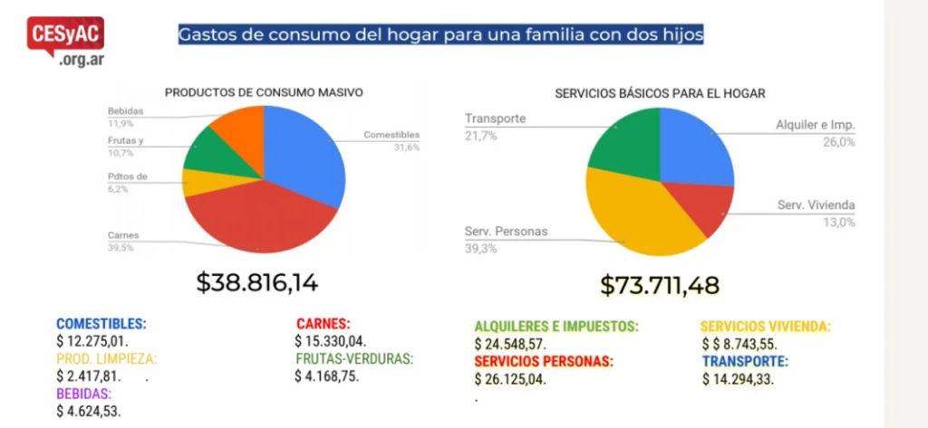 El cálculo realizado por el Cesyac incluye alimentos, productos de limpieza, servicios, gastos en el transporte y alquiler. Si bien este último es variable, y cambia dependiendo de los espacios y la zona donde esté ubicado, el promedio de gastos aproximado es de más de 112 mil pesos. De esta manera, se registró un aumento del 9.74% con respecto al mes anterior.