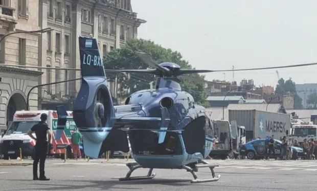 Ante la urgencia, hubo un corte total en el tránsito sobre la Avenida del Libertador, para que descienda el helicóptero sanitario, con el que se trasladó a la oficial para la atención médica