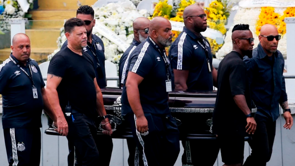 El campo de juego del estadio de Santos cuenta con dos carpas blancas y en una de ellas se encuentran los restos de Pelé, además de los asientos donde estarán sus familiares a lo largo de toda la jornada. Los hinchas, en tanto, se acercaron en un gran número y circulan por un corredor a cinco metros del féretro, mientras que una pancarta con el lema “Viva el Rey. Pelé 82 años” cubre una de las tribunas del estadio.