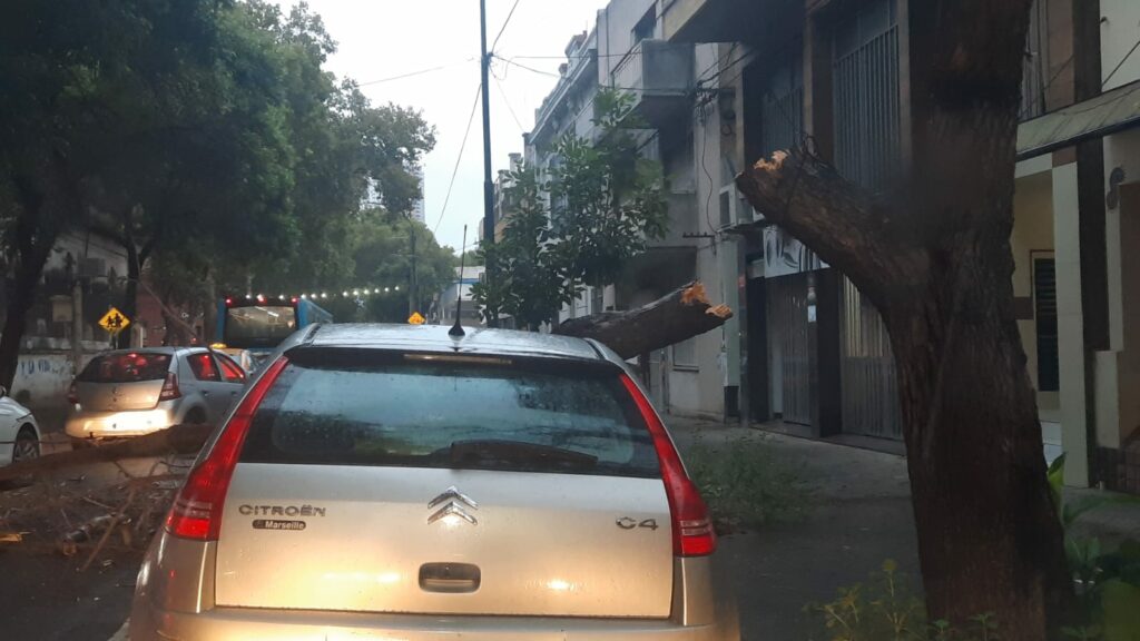 Durante este viernes a la mañana, una rama de un árbol cayó sobre un automóvil que se encontraba estacionado en Callao entre Salta y Catamarca, en el macrocentro de la ciudad.