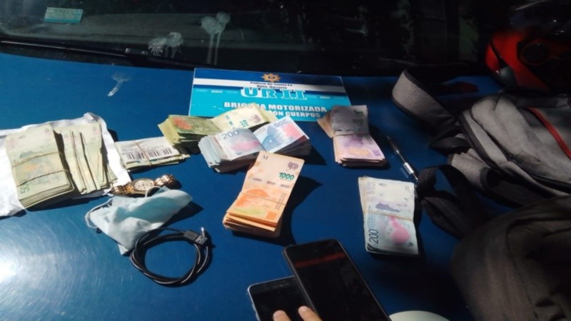 Una vez detenidos, los efectivos policiales procedieron al secuestro de las pertenencias de los hombres. Entre ellas, divididas en dos mochilas diferentes, encontraron dos mochilas con celulares y 293.570 pesos en efectivo.
