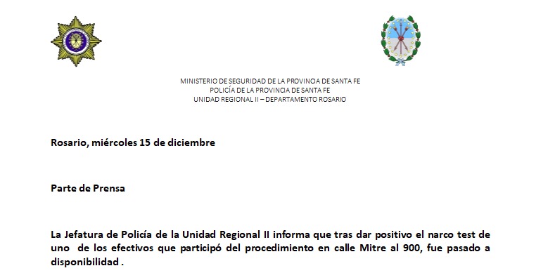 De esta manera, el uniformado sería apartado de la fuerza en las próximas horas mientras continúa el sumario administrativo. Al otro implicado, en tanto, no se le detectaron sustancias.