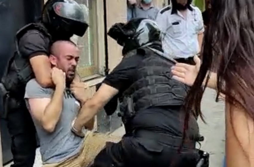Minutos después, la conversación se transformó en una discusión y policías aparecieron en la escena. Durante el altercado, el infractor intentó retirarse, pero lo arrojaron al suelo y transeúntes que circulaban por la zona intervinieron.