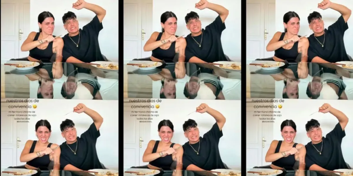 “Nuestros días de convivencia. Mi hermano chocho de comer milanesas de soja, todos los días”, escribió la modelo con una divertida foto de ambos en la mesa.