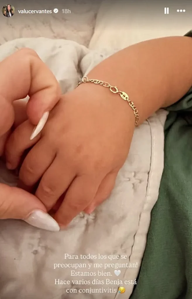 “Para todos los que se preocupan y me preguntan! Estamos bien. Hace varios días Benja está con conjuntivitis”, expresó la morocha en una historia tomando la mano de su hijo y llevando tranquilidad a sus seguidores tras varios días ausente en las redes.