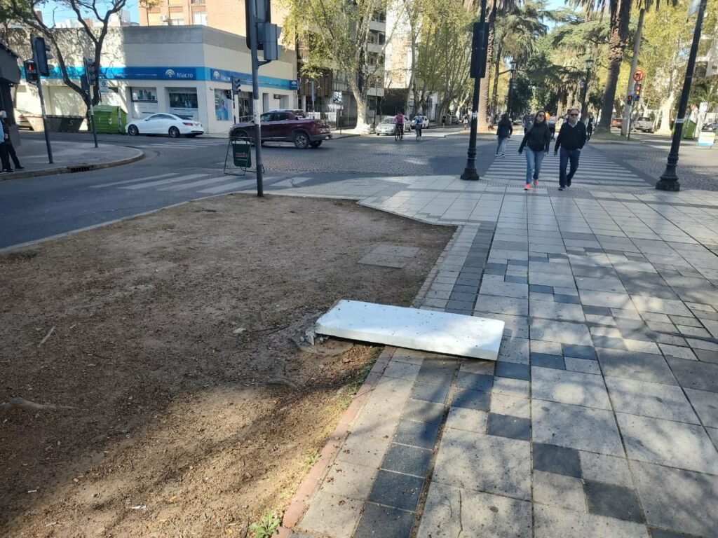 La edila peronista mostró en Twitter que la placa estaba rota, aunque todavía se desconozca el motivo. López publicó dos fotos del mármol tirado sobre el cantero central del bulevar que este domingo estaba cortado producto de la Calle Recreativa.