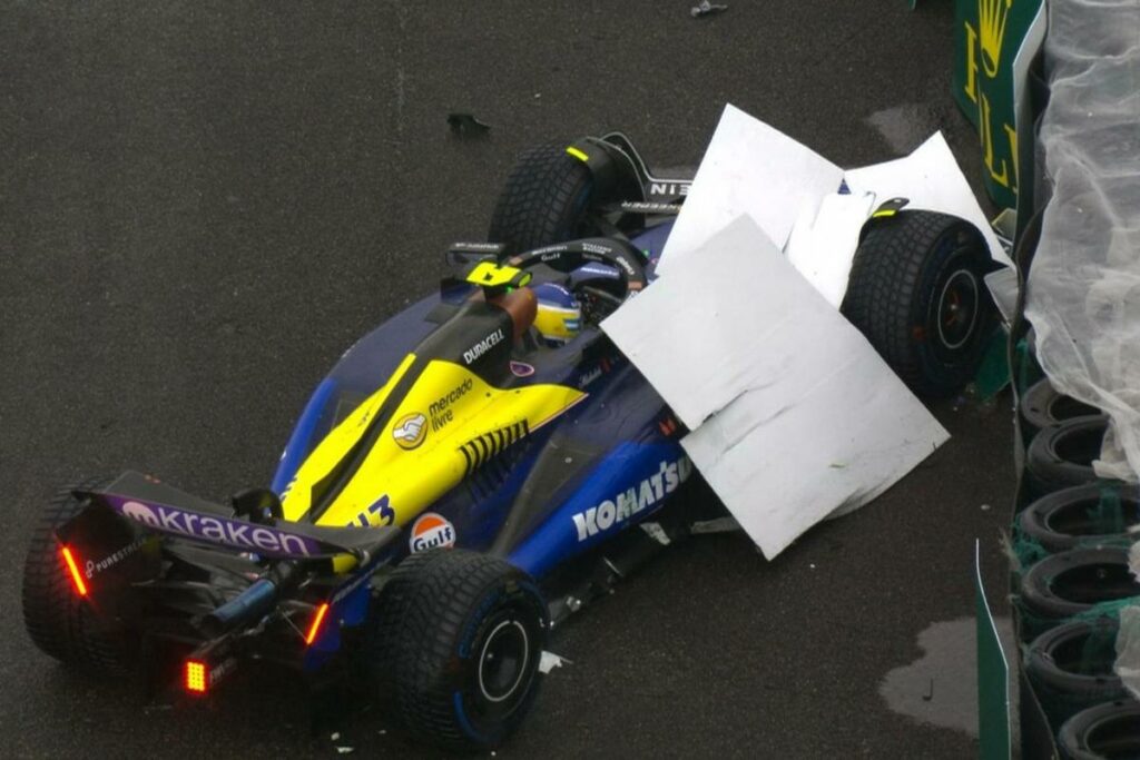 El argentino Fraco Colapinto tuvo un accidentado debut en la lluvia, ya que perdió el control de su monoplaza y chocó con las barreras externas durante la clasificación del Gran Premio de Brasil.