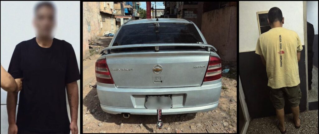 La secuencia continuó con la huida de los sospechosos, quienes fueron detectados mientras corrían y abordaban un automóvil estacionado a pocas cuadras. Se trataba de un Chevrolet Astra, cuyo seguimiento resultó clave para el avance de la investigación.