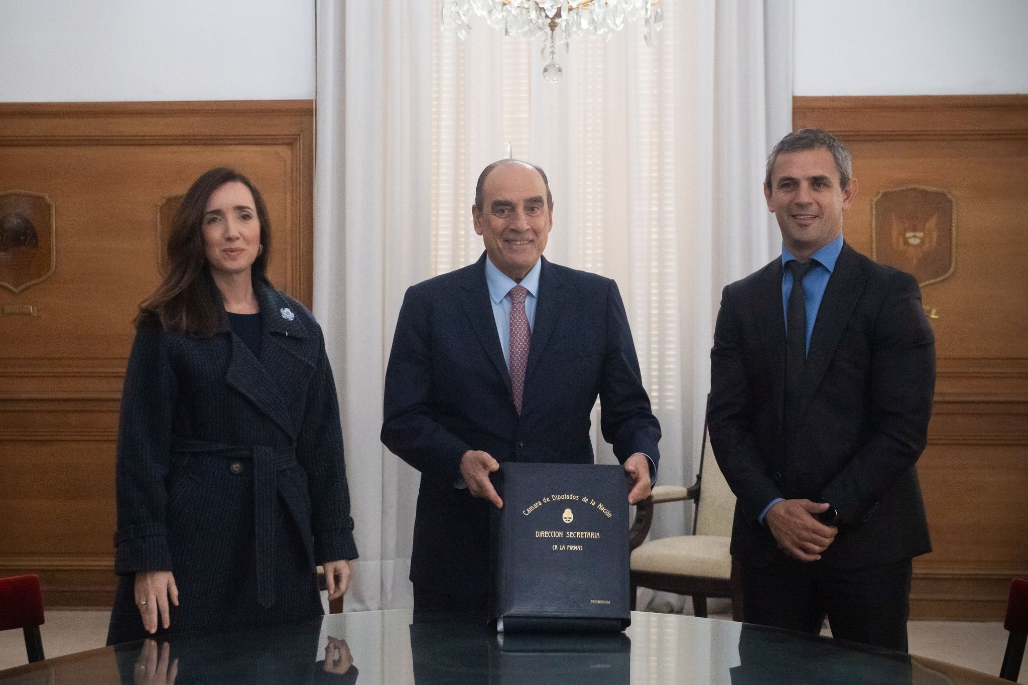 “El jefe de Gabinete @GAFrancosOK recibió de @VickyVillarruel y @MenemMartin la Ley Bases, que será promulgada por el Poder Ejecutivo. Estuvieron presentes el vocero presidencial @madorni y el vicejefe de Gabinete del Interior, @catalanlisandro”, se publicó en el perfil de X de la Jefatura de Gabinete.
