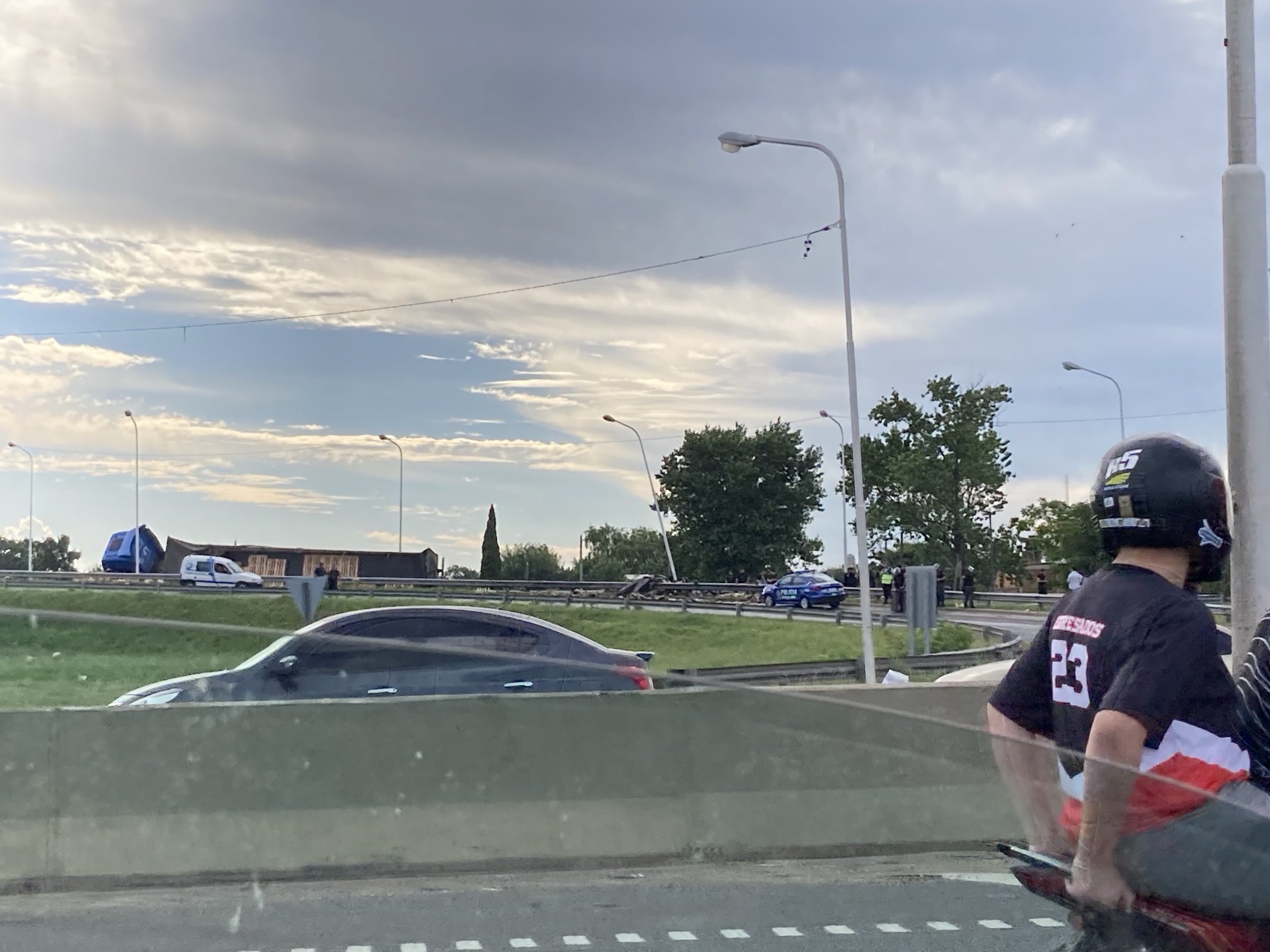 ⚠️ Av. Circunvalación de #Rosario acceso Autopista Rosario Córdoba. Vuelco de camión, la carga ocupa parte de la calzada.