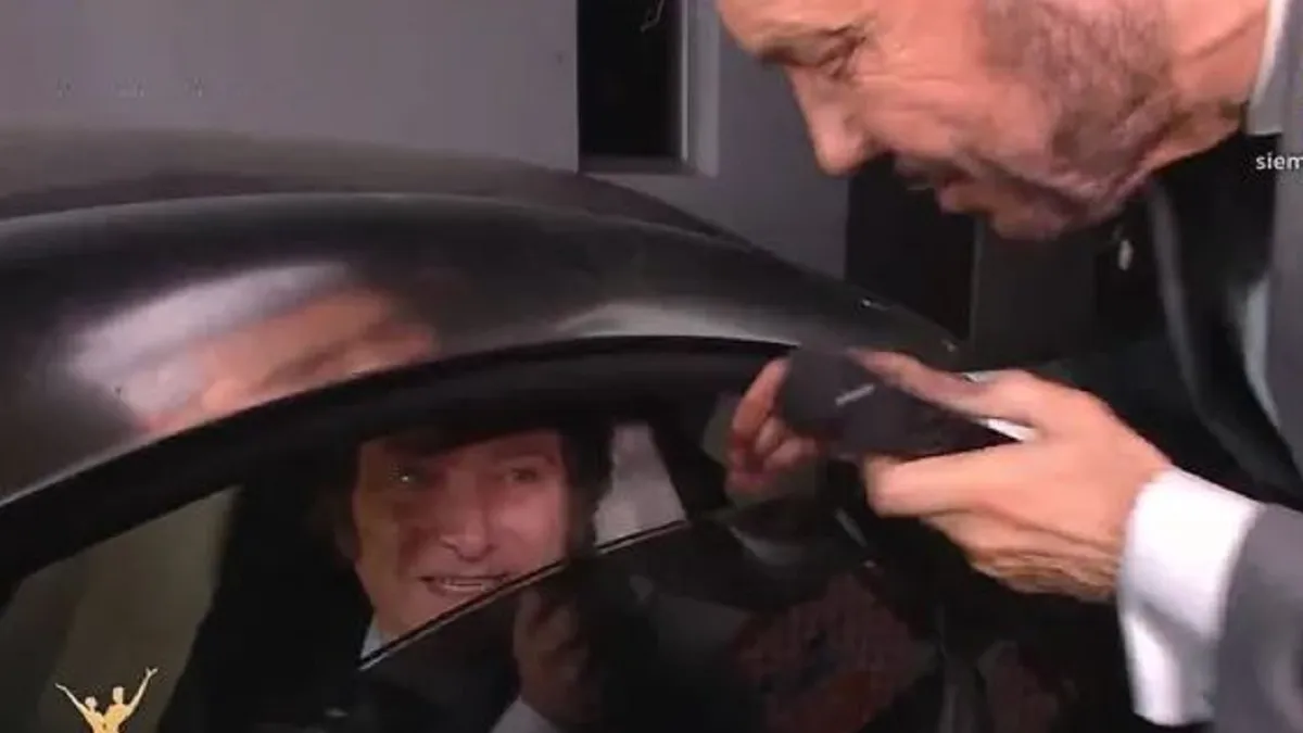 A pesar de que nunca lo hace, Tinelli salió al sector de cocheras del establecimiento donde, supuestamente de forma casual”, se topó con el economista dentro de su auto. Si bien el candidato se negó a bajar del vehículo, aprovechó el espacio para hacer campaña: “Dolarización sí. Basta de Inflación y que nos roben con la inflación”, sostuvo.