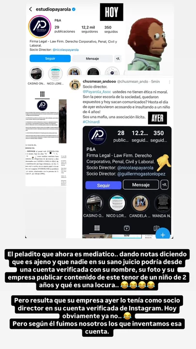 Por último, volvió a mencionar a Guillermo Gastón López, el abogado que señaló y acusó de hostigar a la China Suárez y a sus hijos: “El peladito que ahora es mediatico… dando notas diciendo que es ajeno y que nadie en su sano juicio podría desde una cuenta verificada con su nombre, su foto y su empresa publicar contenido de este tenor de un niño de 2 años y qué es una locura..”.