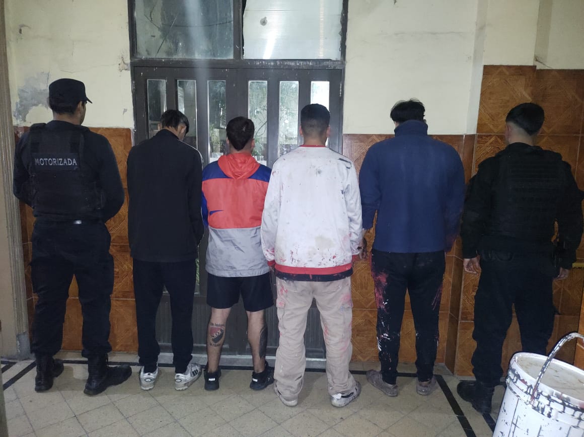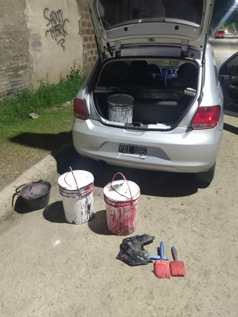 De acuerdo al breve parte policial que se conoció tras el operativo, en el mismo actuó personal de la Brigada Motorizada y se secuestraron cuatro baldes de pintura y algunos aerosoles con colores rojinegros. Además, sostuvieron que los sospechosos fueron vistos vandalizando columnas por medio de las cámaras de seguridad.