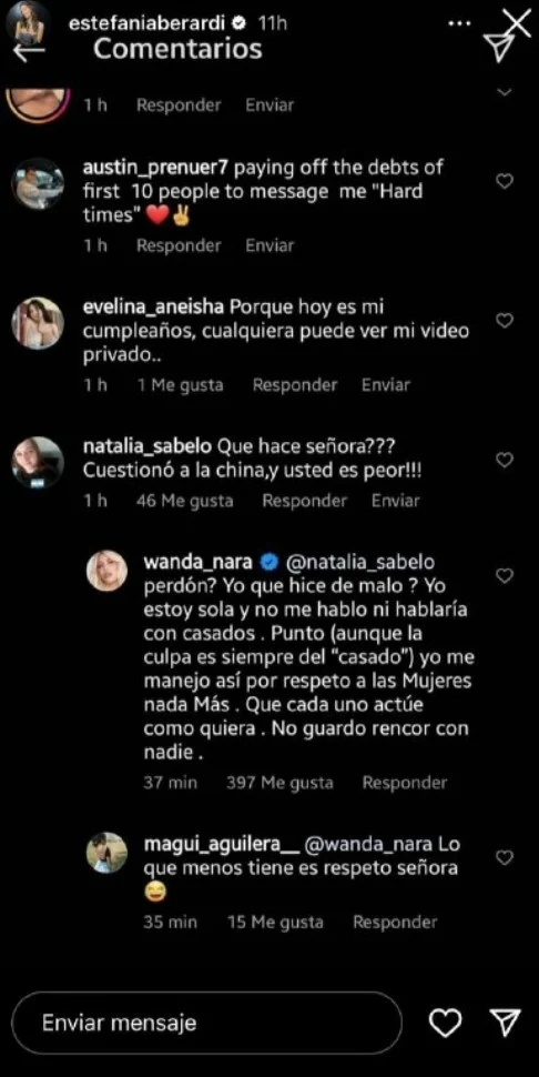 En Instagram, una usuaria acusó a Wanda de hacer con L-Gante lo mismo que China hizo con Mauro cuando vivieron un affaire. “¿Qué hace señora? Cuestionó a China y usted es peor”, le dijeron.
