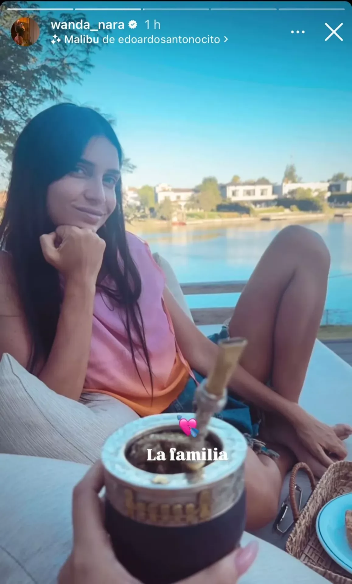 “La familia”, escribió Wanda en esta ocasión junto a un emoji de corazón, mientras tomaba unos mates con su hermana en su casa de Santa Bárbara.