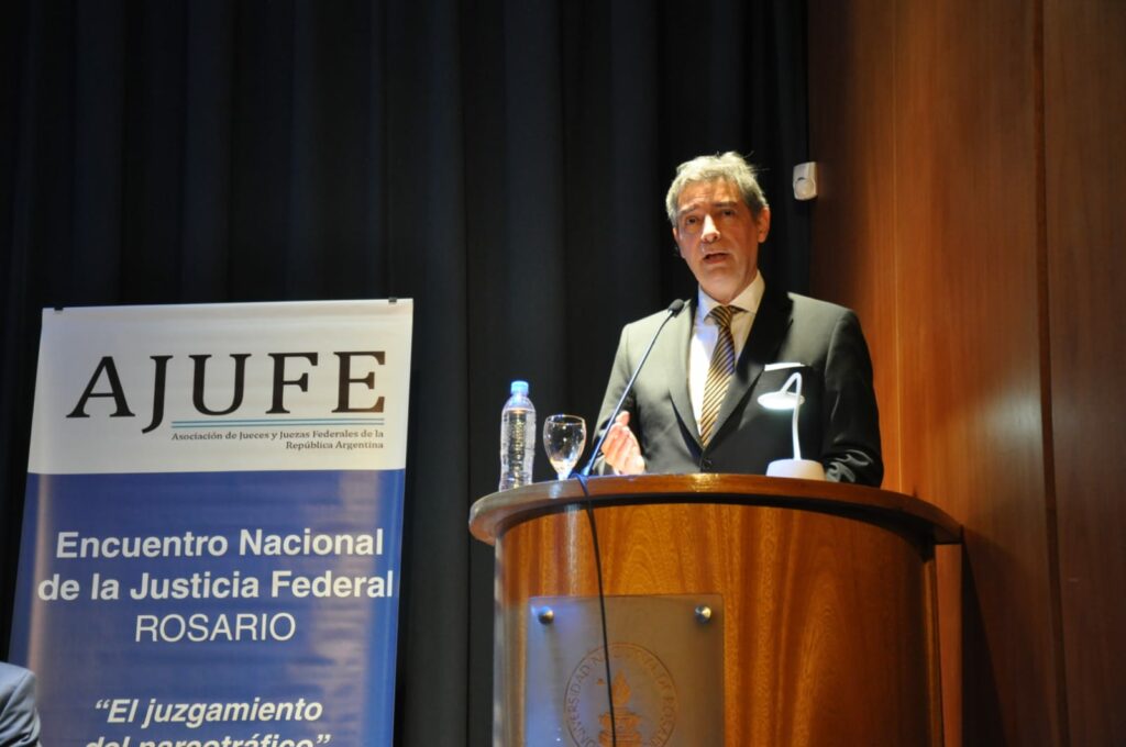 Mientras sucedía el acto en Derecho, al que la ni siquiera fueron invitados los integrantes de la Corte Provincial de manera formal y que fue organizado por una agrupación gremial judicial denominada AJUFE, los fiscales provinciales Matías Edery y Luis Schiappa Pietra estaban finalizando los alegatos de clausura en el juicio contra Esteban Alvarado y seis integrantes de su banda por asociación ilícita y varios homicidios. Sí, la justicia santafesina no tiene la potestad de juzgar la comercialización de estupefacientes, raíz de todos los delitos colaterales que se producen.