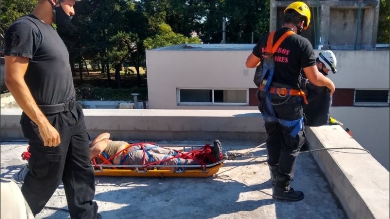 A raíz de los politraumatismos sufridos por la caída, el albañil quedó imposibilitado de bajar por sus propios medios. De esta manera, los bomberos lo sujetaron a una camilla y lograron descenderlo hasta la calle, donde se ubicó la ambulancia que lo atendió y luego trasladó.